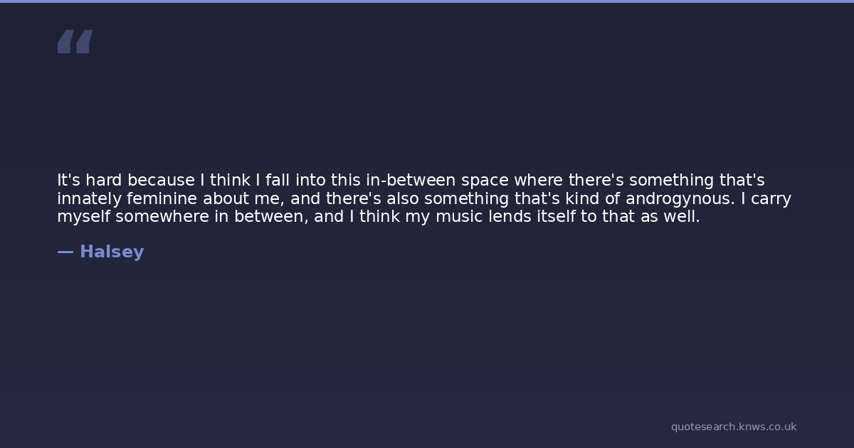 It's hard because I think I fall into this in-between space where there's something that's innately feminine about me, and there's also something that's kind of androgynous. I carry myself somewhere in between, and I think my music lends itself to that as well.