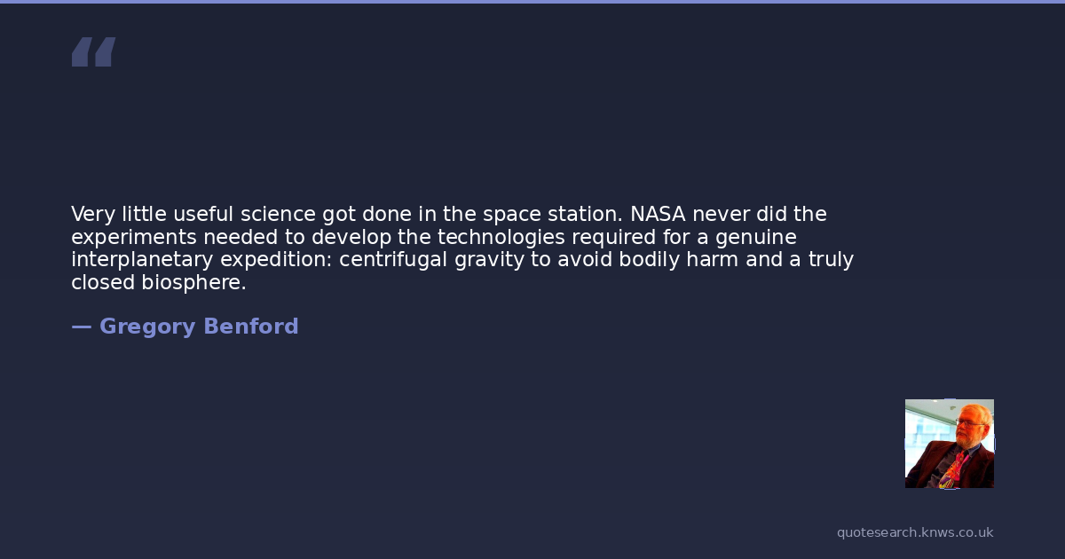 Very little useful science got done in the space station. NASA never did the experiments needed to develop the technologies required for a genuine interplanetary expedition: centrifugal gravity to avoid bodily harm and a truly closed biosphere.