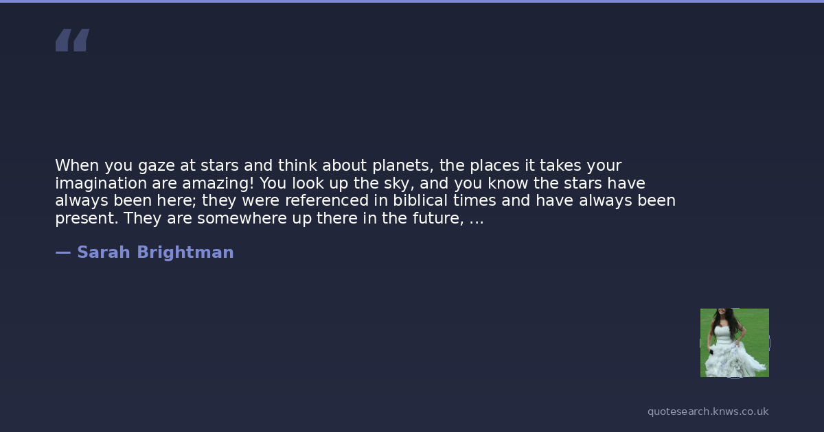 When you gaze at stars and think about planets, the places it takes your imagination are amazing! You look up the sky, and you know the stars have always been here; they were referenced in biblical times and have always been present. They are somewhere up there in the future, and they guide you; they make you feel safe.