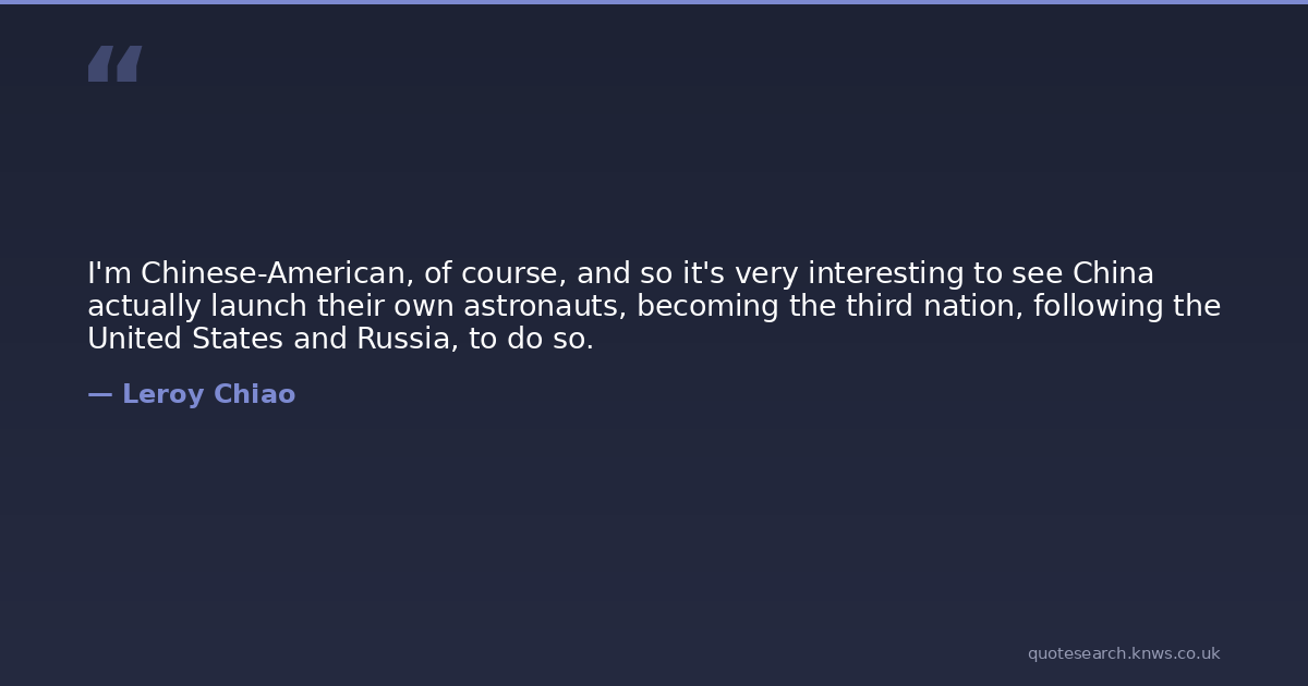 I'm Chinese-American, of course, and so it's very interesting to see China actually launch their own astronauts, becoming the third nation, following the United States and Russia, to do so.