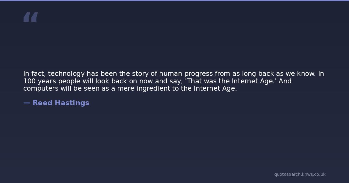 In fact, technology has been the story of human progress from as long back as we know. In 100 years people will look back on now and say, 'That was the Internet Age.' And computers will be seen as a mere ingredient to the Internet Age.