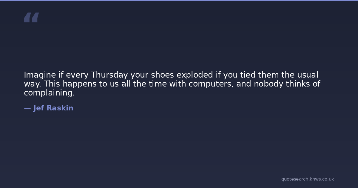 Imagine if every Thursday your shoes exploded if you tied them the usual way. This happens to us all the time with computers, and nobody thinks of complaining.