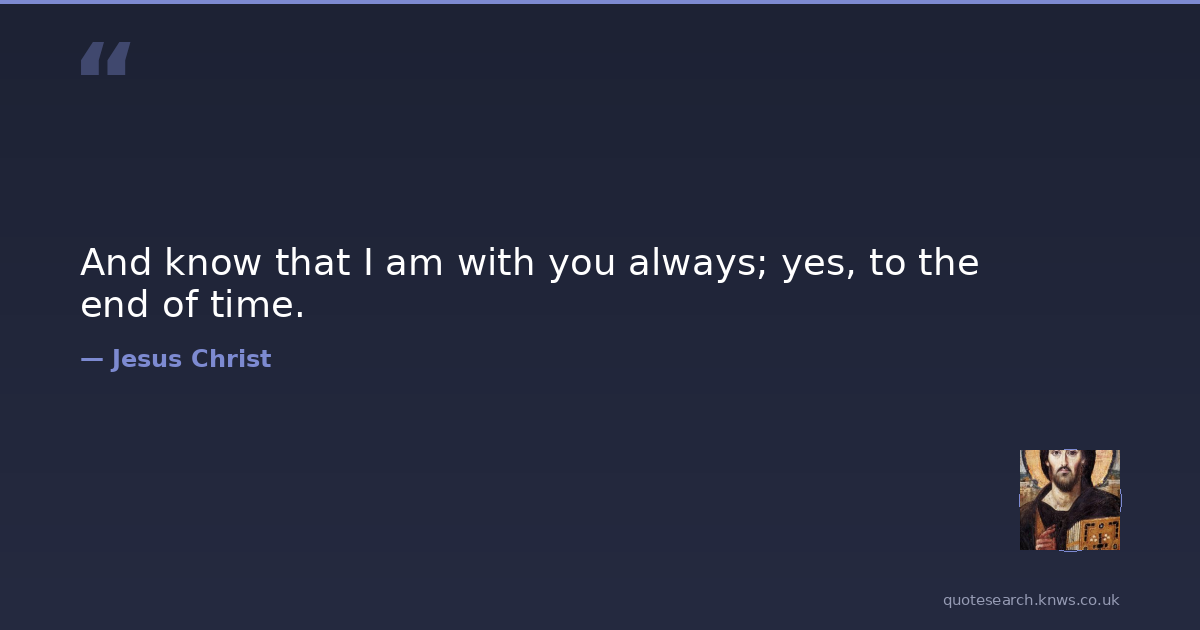 And know that I am with you always; yes, to the end of time.