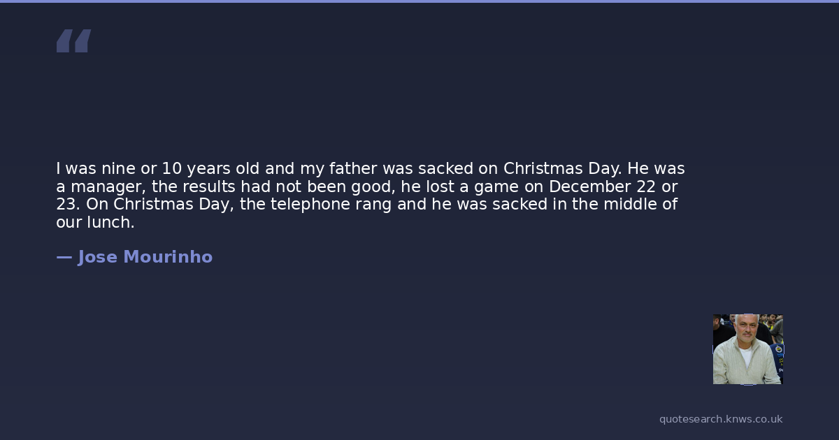 I was nine or 10 years old and my father was sacked on Christmas Day. He was a manager, the results had not been good, he lost a game on December 22 or 23. On Christmas Day, the telephone rang and he was sacked in the middle of our lunch.