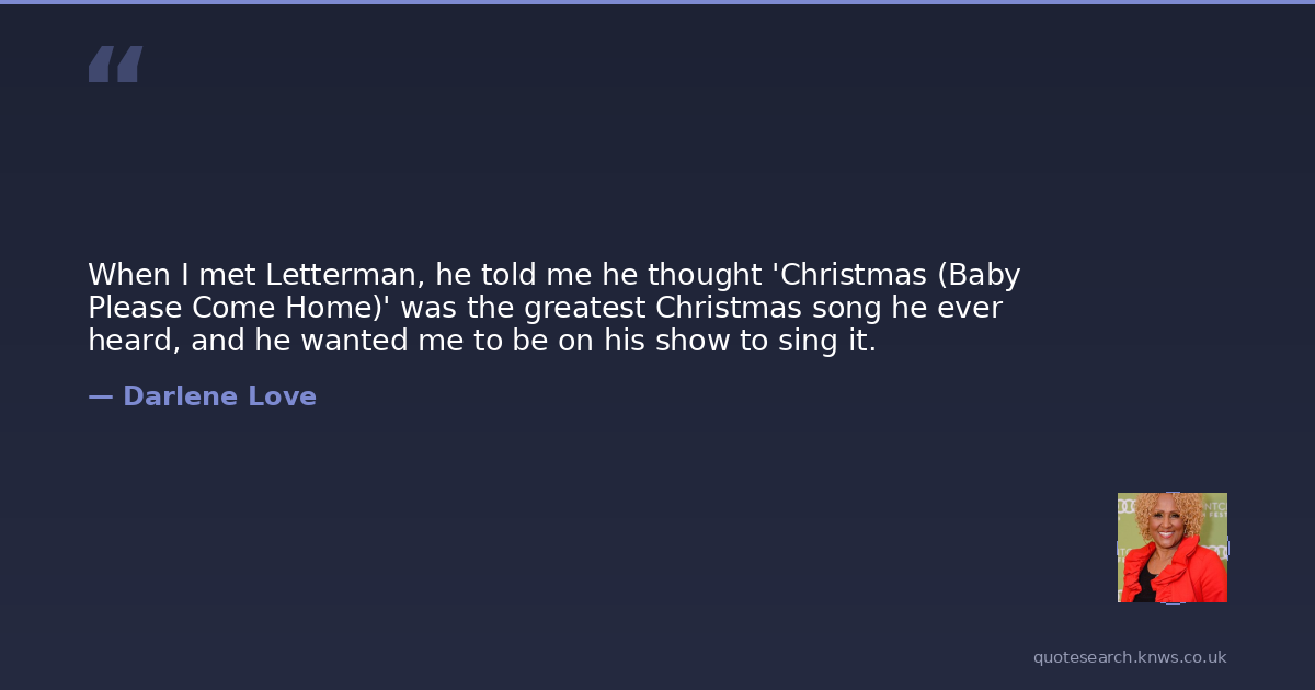 When I met Letterman, he told me he thought 'Christmas (Baby Please Come Home)' was the greatest Christmas song he ever heard, and he wanted me to be on his show to sing it.