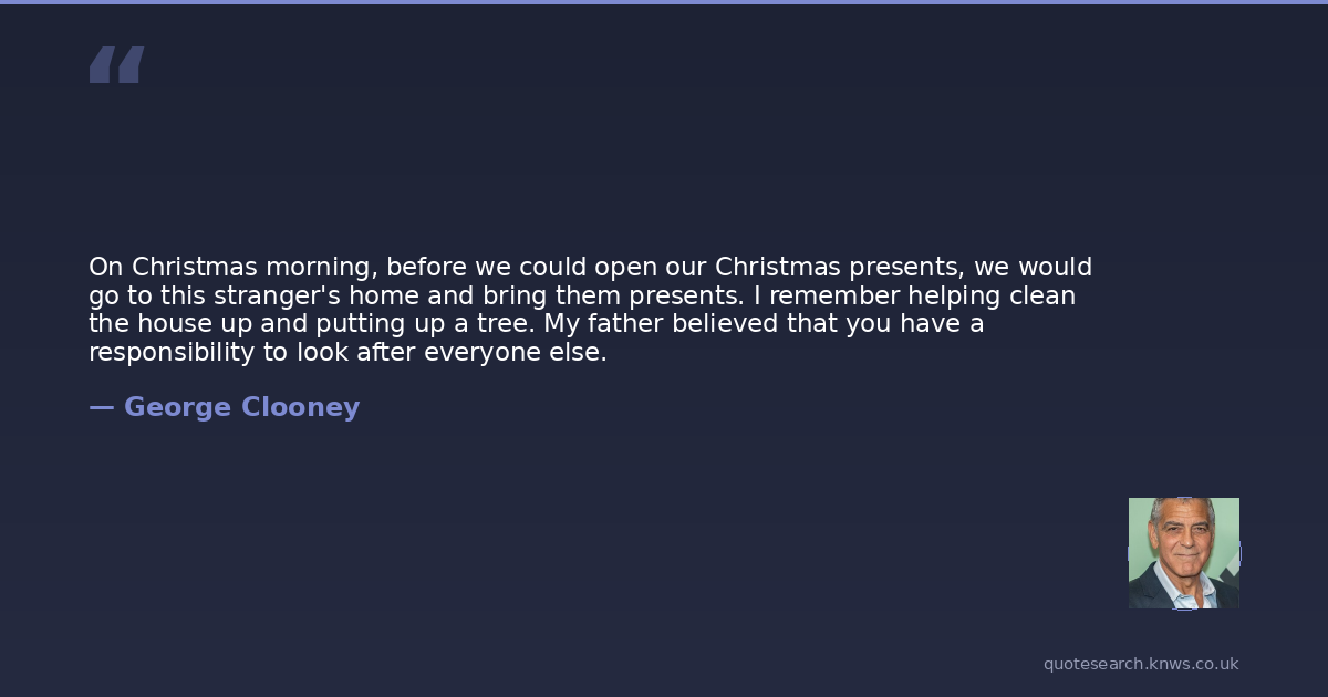 On Christmas morning, before we could open our Christmas presents, we would go to this stranger's home and bring them presents. I remember helping clean the house up and putting up a tree. My father believed that you have a responsibility to look after everyone else.