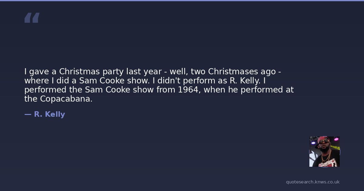 I gave a Christmas party last year - well, two Christmases ago - where I did a Sam Cooke show. I didn't perform as R. Kelly. I performed the Sam Cooke show from 1964, when he performed at the Copacabana.