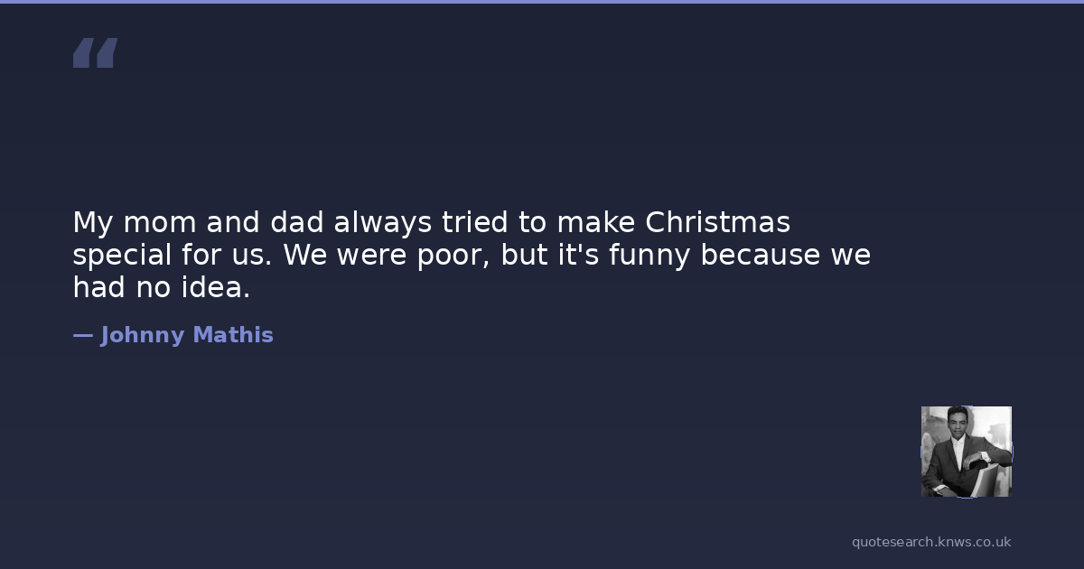 My mom and dad always tried to make Christmas special for us. We were poor, but it's funny because we had no idea.