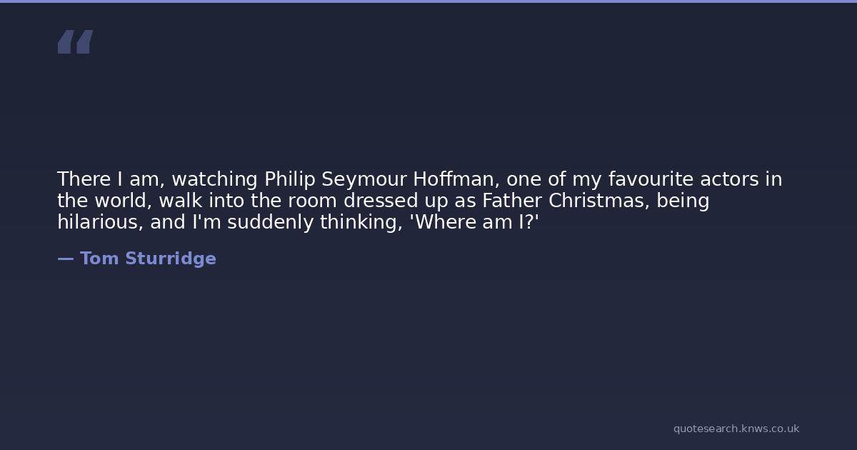 There I am, watching Philip Seymour Hoffman, one of my favourite actors in the world, walk into the room dressed up as Father Christmas, being hilarious, and I'm suddenly thinking, 'Where am I?'