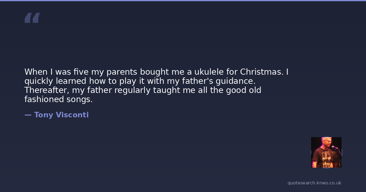 When I was five my parents bought me a ukulele for Christmas. I quickly learned how to play it with my father's guidance. Thereafter, my father regularly taught me all the good old fashioned songs.