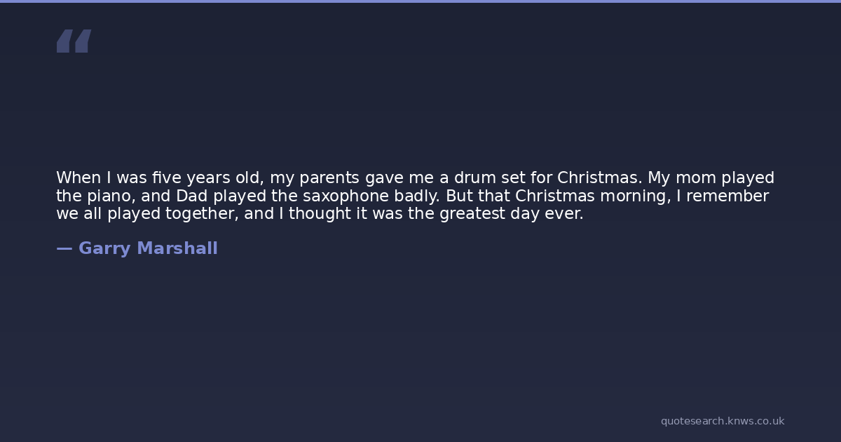 When I was five years old, my parents gave me a drum set for Christmas. My mom played the piano, and Dad played the saxophone badly. But that Christmas morning, I remember we all played together, and I thought it was the greatest day ever.