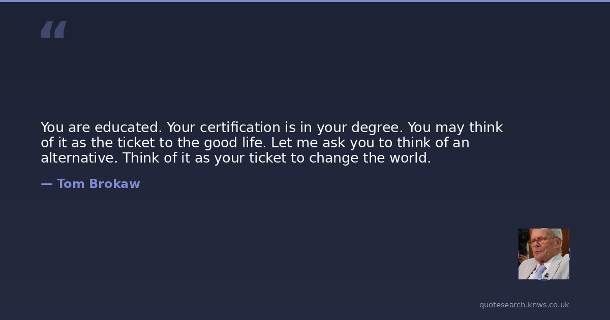 You are educated. Your certification is in your degree. You may think of it as the ticket to the good life. Let me ask you to think of an alternative. Think of it as your ticket to change the world.