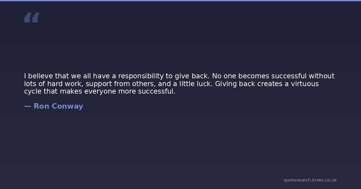 I believe that we all have a responsibility to give back. No one becomes successful without lots of hard work, support from others, and a little luck. Giving back creates a virtuous cycle that makes everyone more successful.
