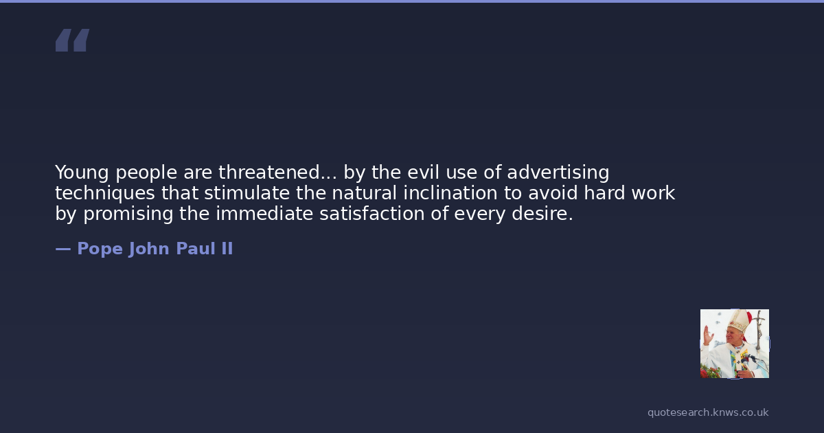 Young people are threatened... by the evil use of advertising techniques that stimulate the natural inclination to avoid hard work by promising the immediate satisfaction of every desire.