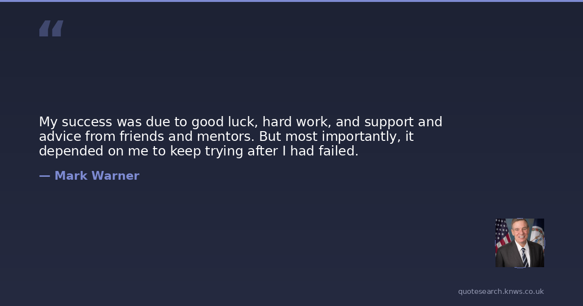 My success was due to good luck, hard work, and support and advice from friends and mentors. But most importantly, it depended on me to keep trying after I had failed.