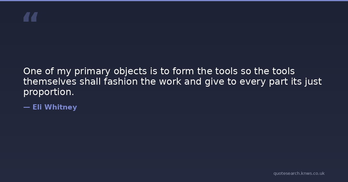 One of my primary objects is to form the tools so the tools themselves shall fashion the work and give to every part its just proportion.