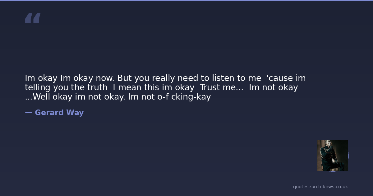 Im okay Im okay now. But you really need to listen to me 'cause im telling you the truth I mean this im okay Trust me... Im not okay ...Well okay im not okay. Im not o-f cking-kay