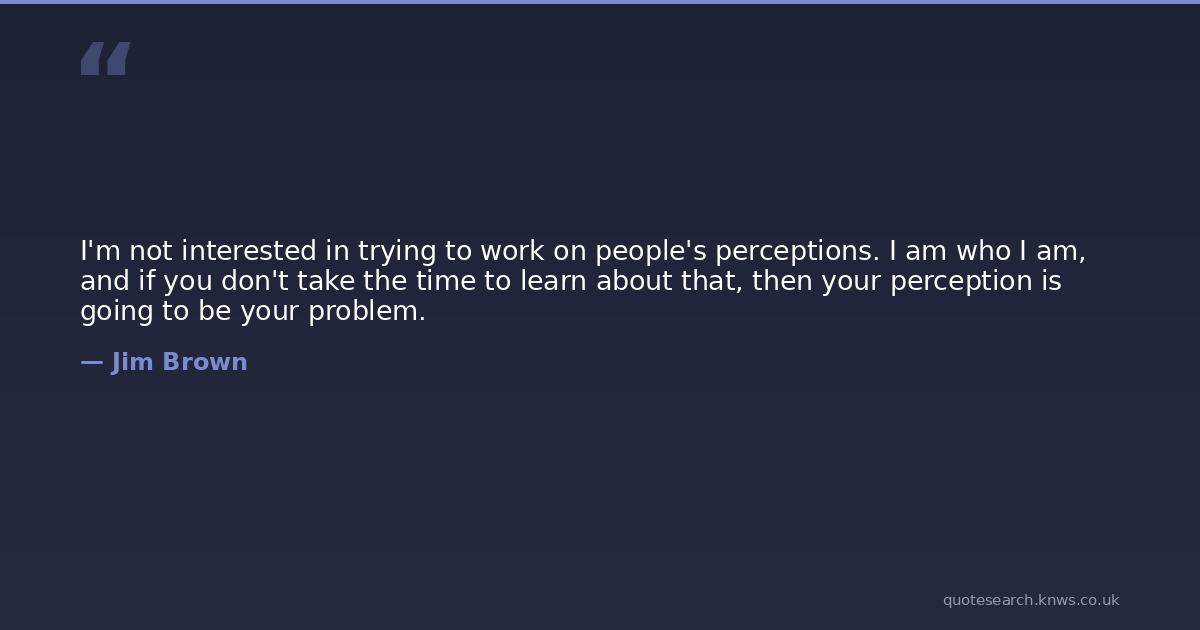 I'm not interested in trying to work on people's perceptions. I am who I am, and if you don't take the time to learn about that, then your perception is going to be your problem.