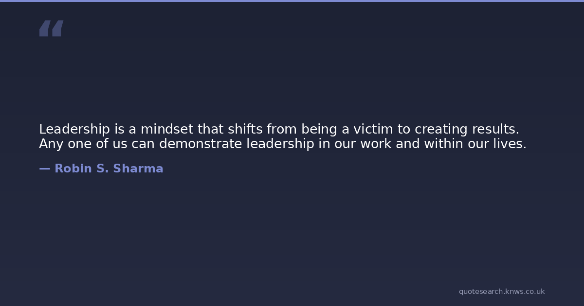 Leadership is a mindset that shifts from being a victim to creating results. Any one of us can demonstrate leadership in our work and within our lives.