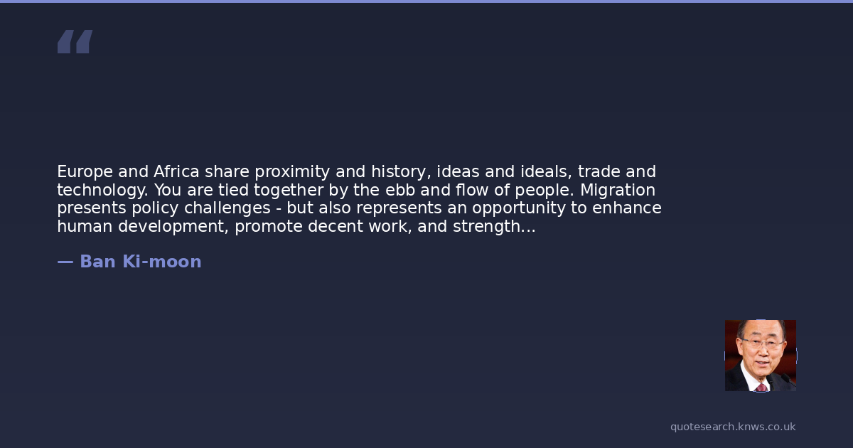 Europe and Africa share proximity and history, ideas and ideals, trade and technology. You are tied together by the ebb and flow of people. Migration presents policy challenges - but also represents an opportunity to enhance human development, promote decent work, and strengthen collaboration.