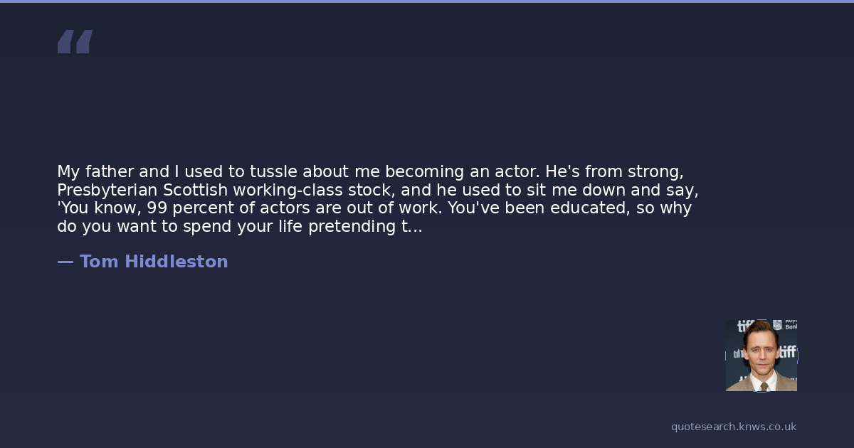 My father and I used to tussle about me becoming an actor. He's from strong, Presbyterian Scottish working-class stock, and he used to sit me down and say, 'You know, 99 percent of actors are out of work. You've been educated, so why do you want to spend your life pretending to be someone else when you could be your own man?'