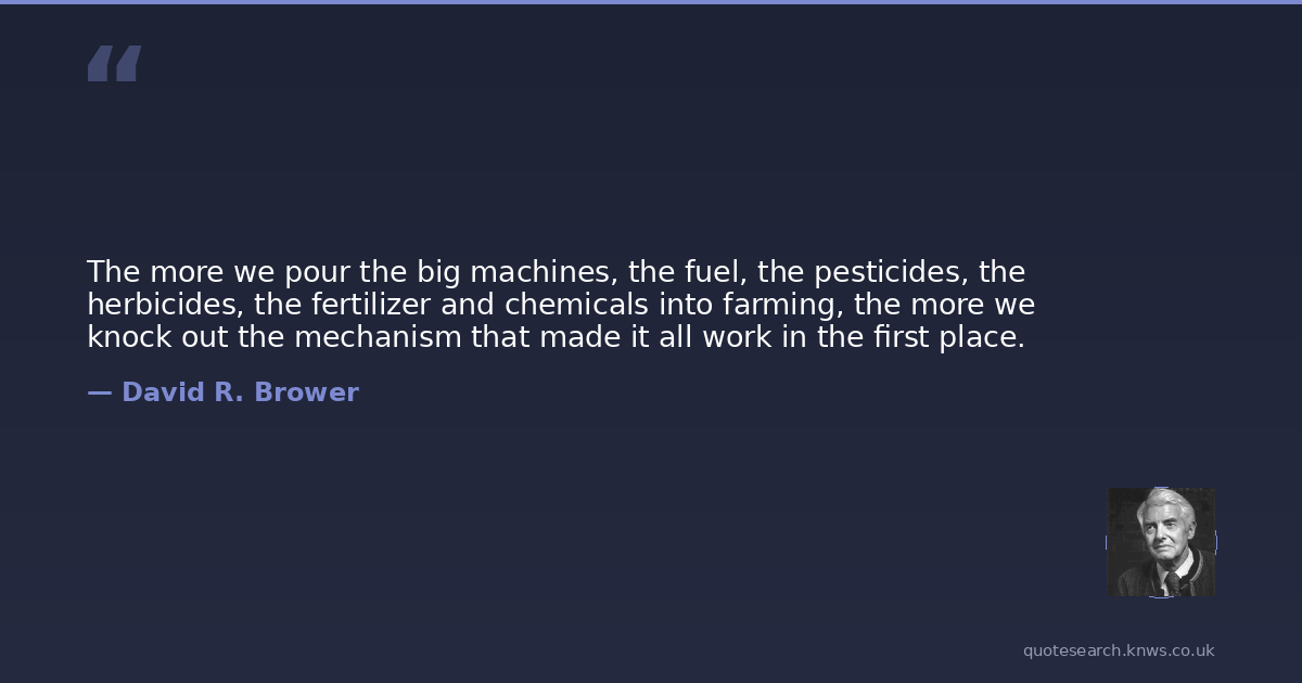 The more we pour the big machines, the fuel, the pesticides, the herbicides, the fertilizer and chemicals into farming, the more we knock out the mechanism that made it all work in the first place.