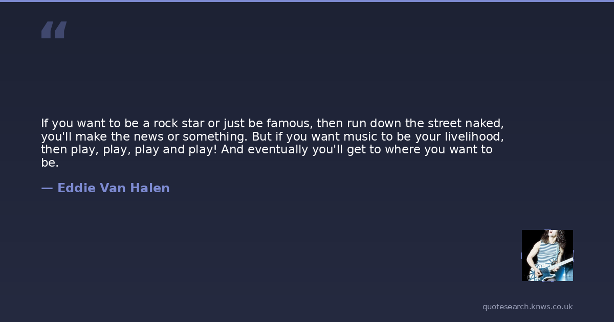 If you want to be a rock star or just be famous, then run down the street naked, you'll make the news or something. But if you want music to be your livelihood, then play, play, play and play! And eventually you'll get to where you want to be.