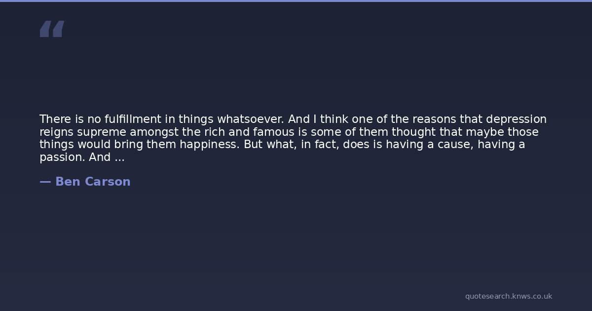 There is no fulfillment in things whatsoever. And I think one of the reasons that depression reigns supreme amongst the rich and famous is some of them thought that maybe those things would bring them happiness. But what, in fact, does is having a cause, having a passion. And that's really what gives life's true meaning.