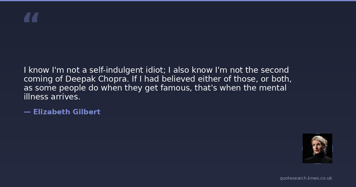 I know I'm not a self-indulgent idiot; I also know I'm not the second coming of Deepak Chopra. If I had believed either of those, or both, as some people do when they get famous, that's when the mental illness arrives.
