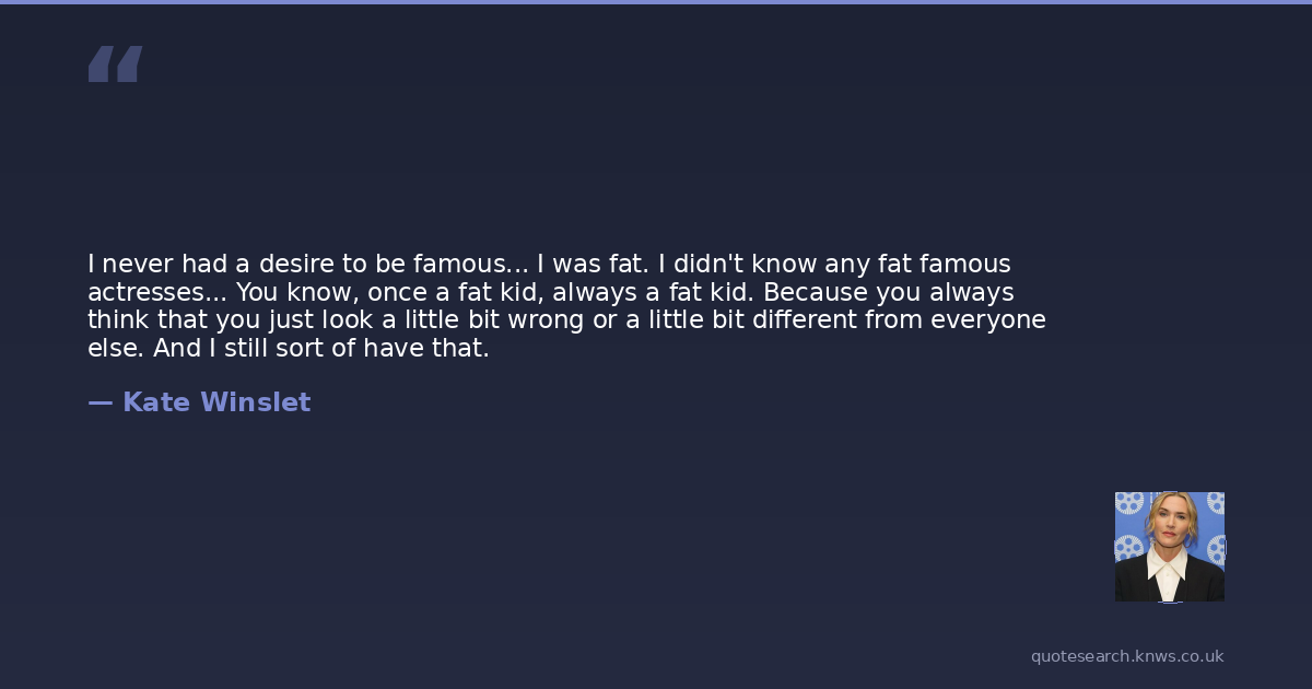 I never had a desire to be famous... I was fat. I didn't know any fat famous actresses... You know, once a fat kid, always a fat kid. Because you always think that you just look a little bit wrong or a little bit different from everyone else. And I still sort of have that.