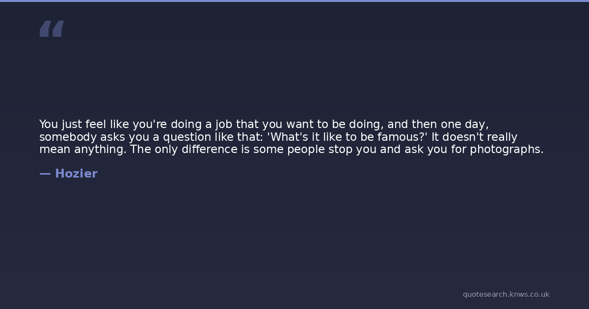 You just feel like you're doing a job that you want to be doing, and then one day, somebody asks you a question like that: 'What's it like to be famous?' It doesn't really mean anything. The only difference is some people stop you and ask you for photographs.