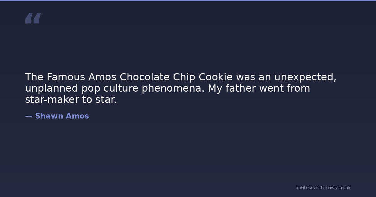 The Famous Amos Chocolate Chip Cookie was an unexpected, unplanned pop culture phenomena. My father went from star-maker to star.