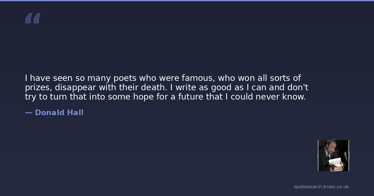 I have seen so many poets who were famous, who won all sorts of prizes, disappear with their death. I write as good as I can and don't try to turn that into some hope for a future that I could never know.