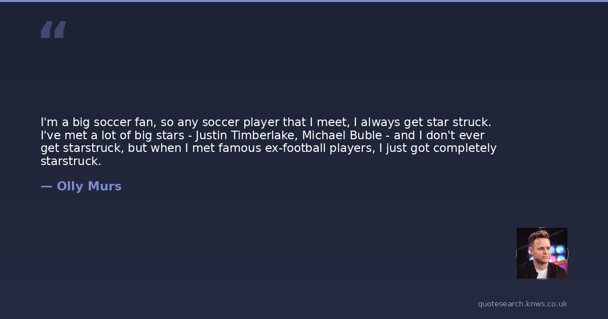 I'm a big soccer fan, so any soccer player that I meet, I always get star struck. I've met a lot of big stars - Justin Timberlake, Michael Buble - and I don't ever get starstruck, but when I met famous ex-football players, I just got completely starstruck.