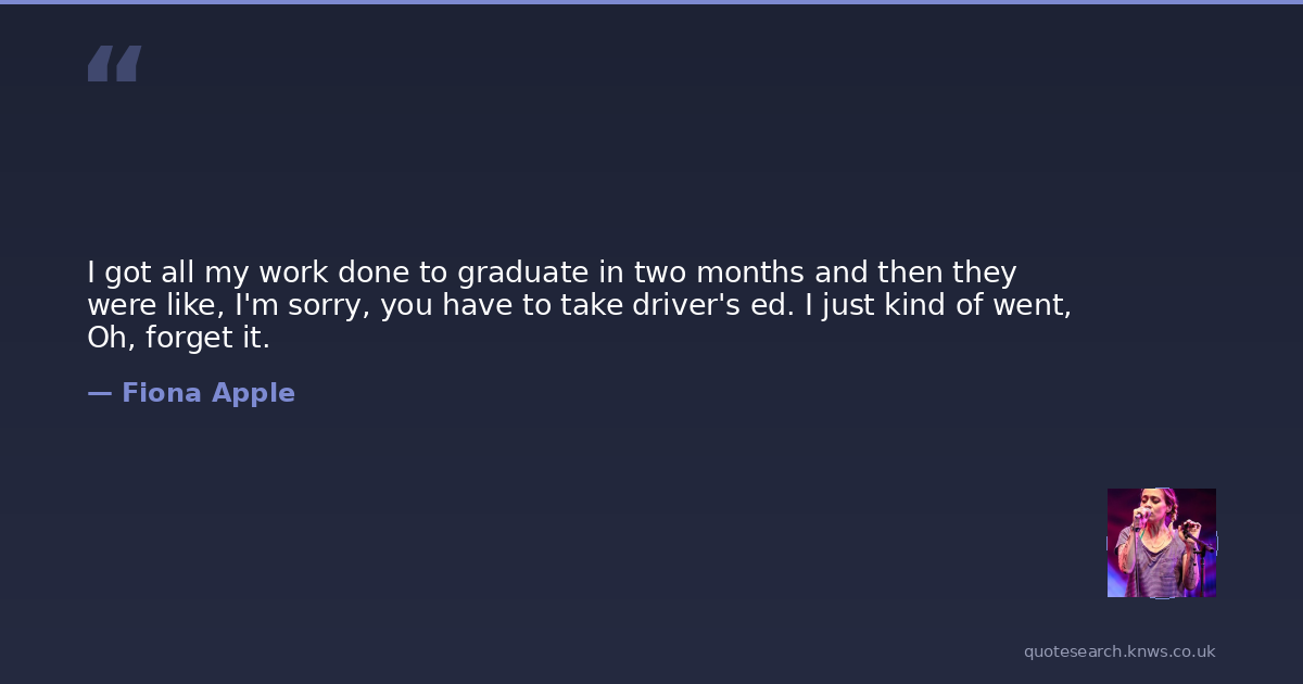 I got all my work done to graduate in two months and then they were like, I'm sorry, you have to take driver's ed. I just kind of went, Oh, forget it.