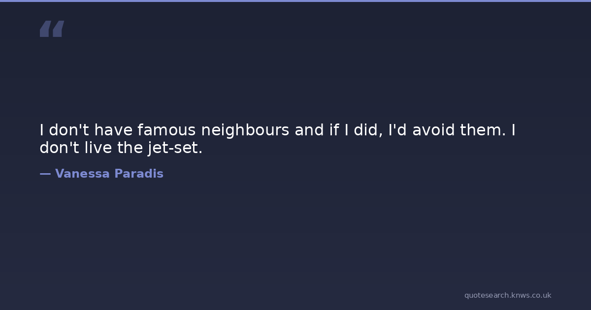 I don't have famous neighbours and if I did, I'd avoid them. I don't live the jet-set. Live Avoid Neighbours Download Image Share on X Share on Facebook Copy Link