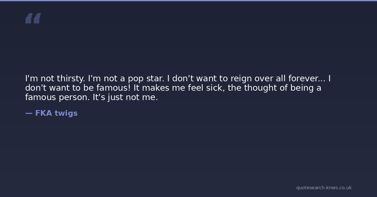 I'm not thirsty. I'm not a pop star. I don't want to reign over all forever... I don't want to be famous! It makes me feel sick, the thought of being a famous person. It's just not me.