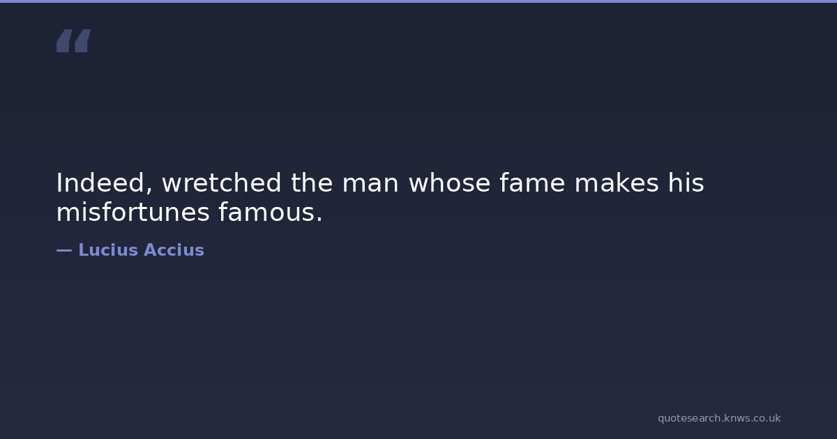 Indeed, wretched the man whose fame makes his misfortunes famous. Man Fame Wretched Download Image Share on X Share on Facebook Copy Link
