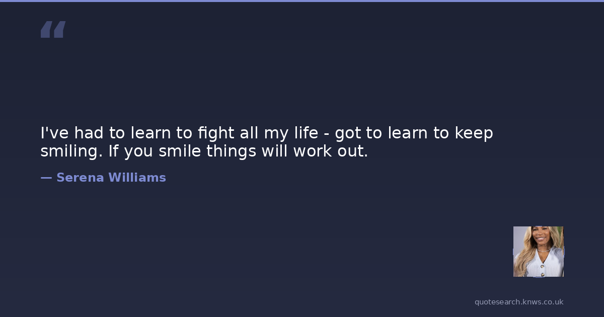 I've had to learn to fight all my life - got to learn to keep smiling. If you smile things will work out.