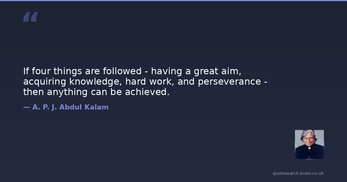 If four things are followed - having a great aim, acquiring knowledge, hard work, and perseverance - then anything can be achieved.