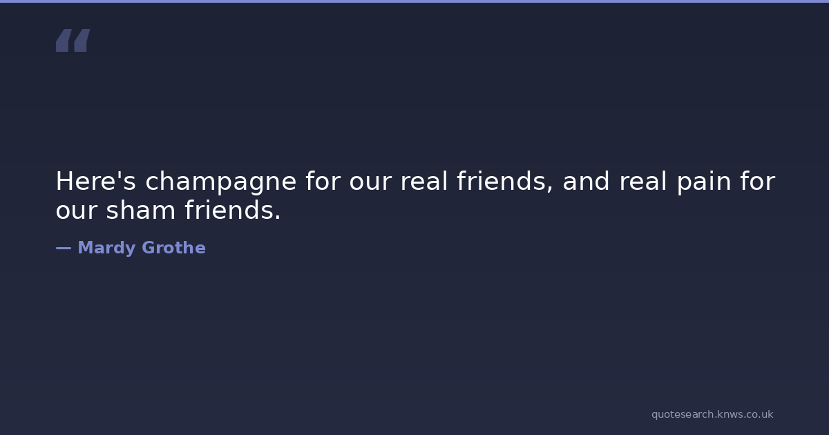 Here's champagne for our real friends, and real pain for our sham friends. champagne chiasmus friendship toasts Download Image Share on X Share on Facebook Copy Link
