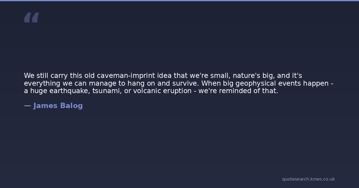 We still carry this old caveman-imprint idea that we're small, nature's big, and it's everything we can manage to hang on and survive. When big geophysical events happen - a huge earthquake, tsunami, or volcanic eruption - we're reminded of that.