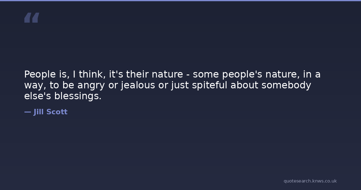 People is, I think, it's their nature - some people's nature, in a way, to be angry or jealous or just spiteful about somebody else's blessings.