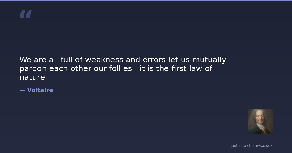 We are all full of weakness and errors let us mutually pardon each other our follies - it is the first law of nature.