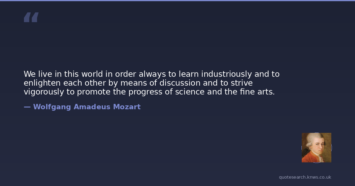 We live in this world in order always to learn industriously and to enlighten each other by means of discussion and to strive vigorously to promote the progress of science and the fine arts.
