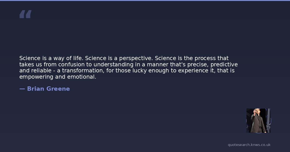 Science is a way of life. Science is a perspective. Science is the process that takes us from confusion to understanding in a manner that's precise, predictive and reliable - a transformation, for those lucky enough to experience it, that is empowering and emotional.