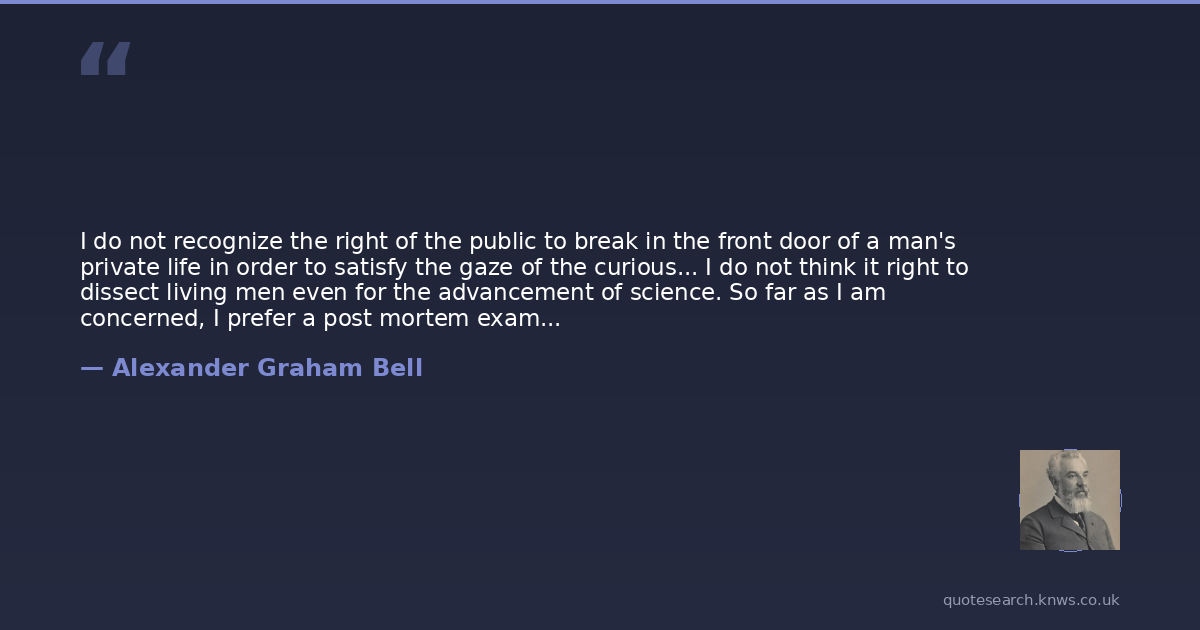 I do not recognize the right of the public to break in the front door of a man's private life in order to satisfy the gaze of the curious... I do not think it right to dissect living men even for the advancement of science. So far as I am concerned, I prefer a post mortem examination to vivisection without anaesthetics.