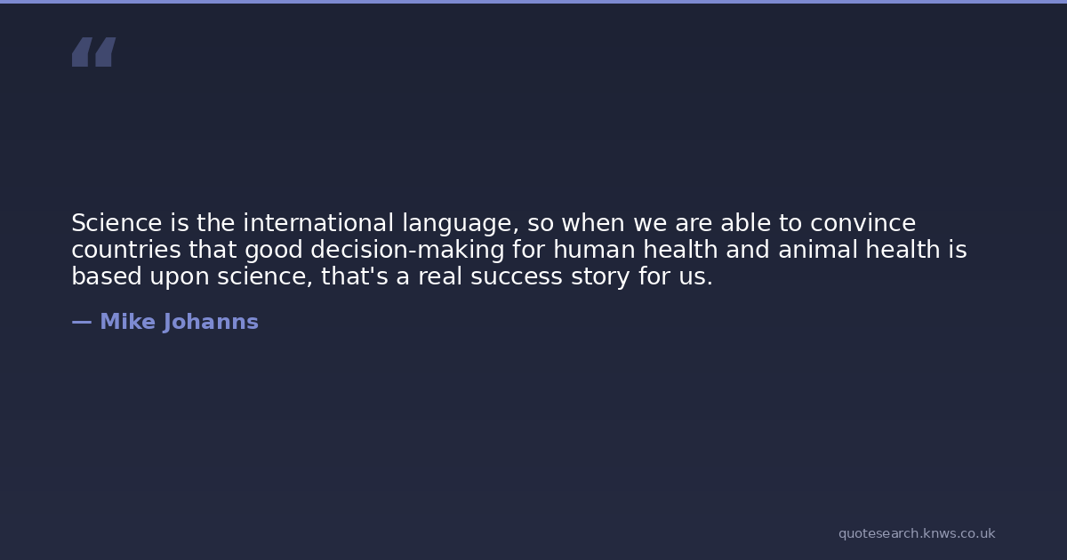 Science is the international language, so when we are able to convince countries that good decision-making for human health and animal health is based upon science, that's a real success story for us.