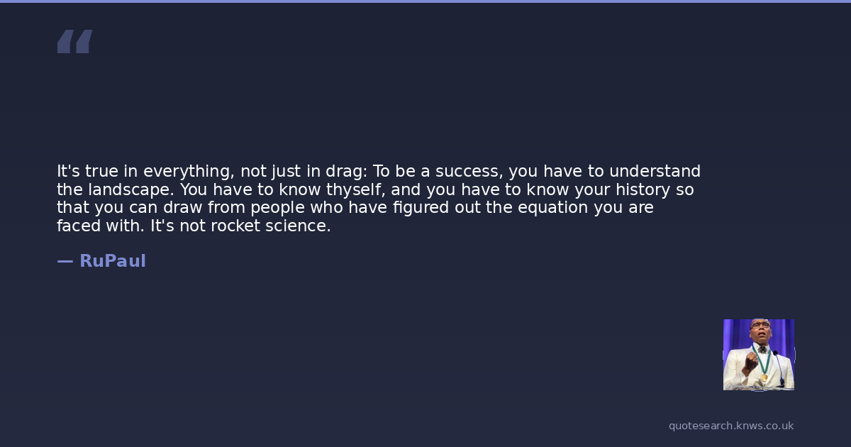 It's true in everything, not just in drag: To be a success, you have to understand the landscape. You have to know thyself, and you have to know your history so that you can draw from people who have figured out the equation you are faced with. It's not rocket science.