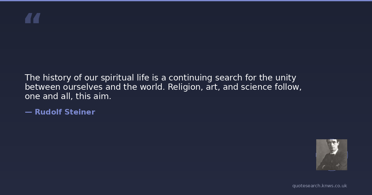 The history of our spiritual life is a continuing search for the unity between ourselves and the world. Religion, art, and science follow, one and all, this aim.